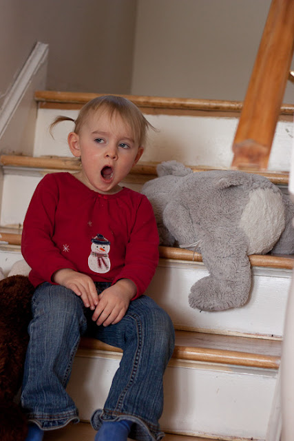 After naptime, Katelyn often comes down the stairs with whatever toys she was sleeping with.